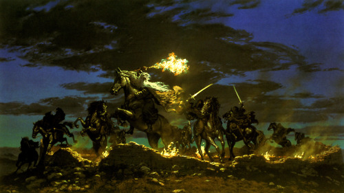 The Nazgûl, now regrouped continued the pursuit of Frodo and his company. They caught up with Frodo who was riding the horse of Glorfindel and making his way to Rivendell. The Nine chasing Frodo to the Ford of Bruinen demanded Frodo hand over the Ring. Frodo refused and defied them, the Nazgûl began crossing the river to take the Ring. However, the water, enchanted by Elrond and Gandalf, formed a great wave and swept the Nine away, killing their horses.