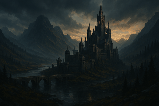 Where Gallandor gleamed with marble and sunlight, Noctharion stood in basalt and obsidian. Its skies were often storm-shrouded, its rivers deep and dark, its mountains black as iron. And yet, in this brooding beauty, there was majesty.